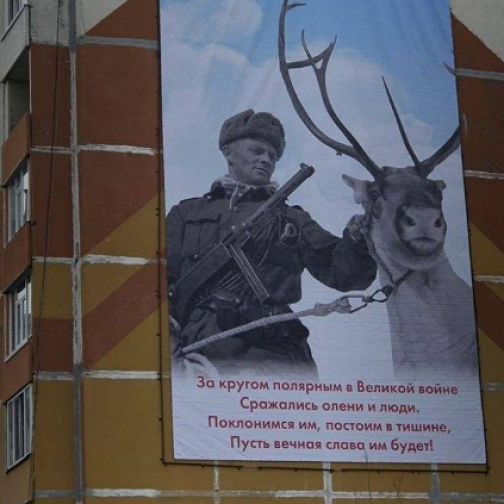 В Коми повесили плакат к 9 Мая. На нем изображены финский солдат и олень
