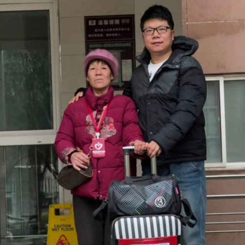 Китаец подготовил тещу к первому полету. Он разместил на чемодане QR-код и просьбу о помощи