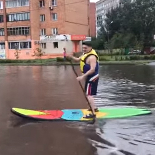 На Красноярск обрушился сильный ливень. Местные жители решили поиграть в Венецию