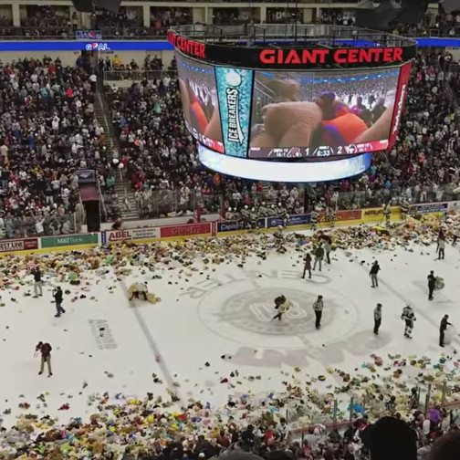 Хоккейные болельщики выбросили на лед 35 тыс. мягких игрушек для благотворительности