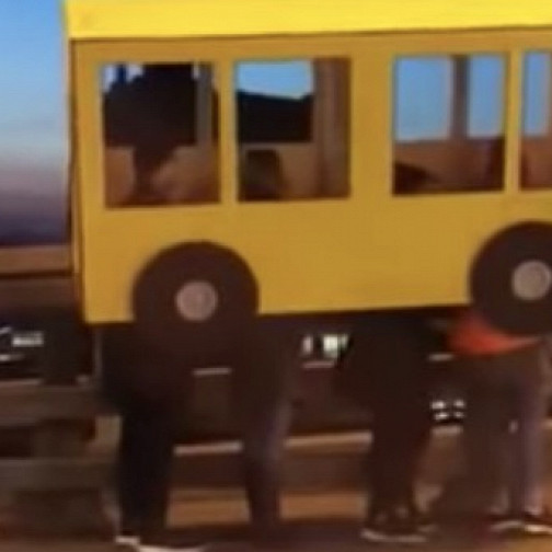 Художники из Владивостока притворились автобусом, чтобы попасть на мост, куда не пускают пешеходов