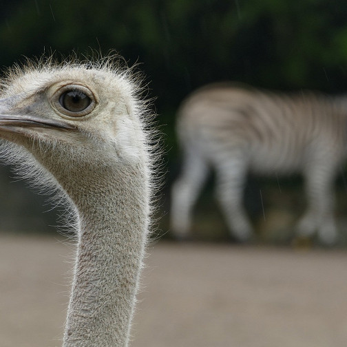 Познакомьтесь с Блю: это страус из британского сафари-парка, который считает себя зеброй