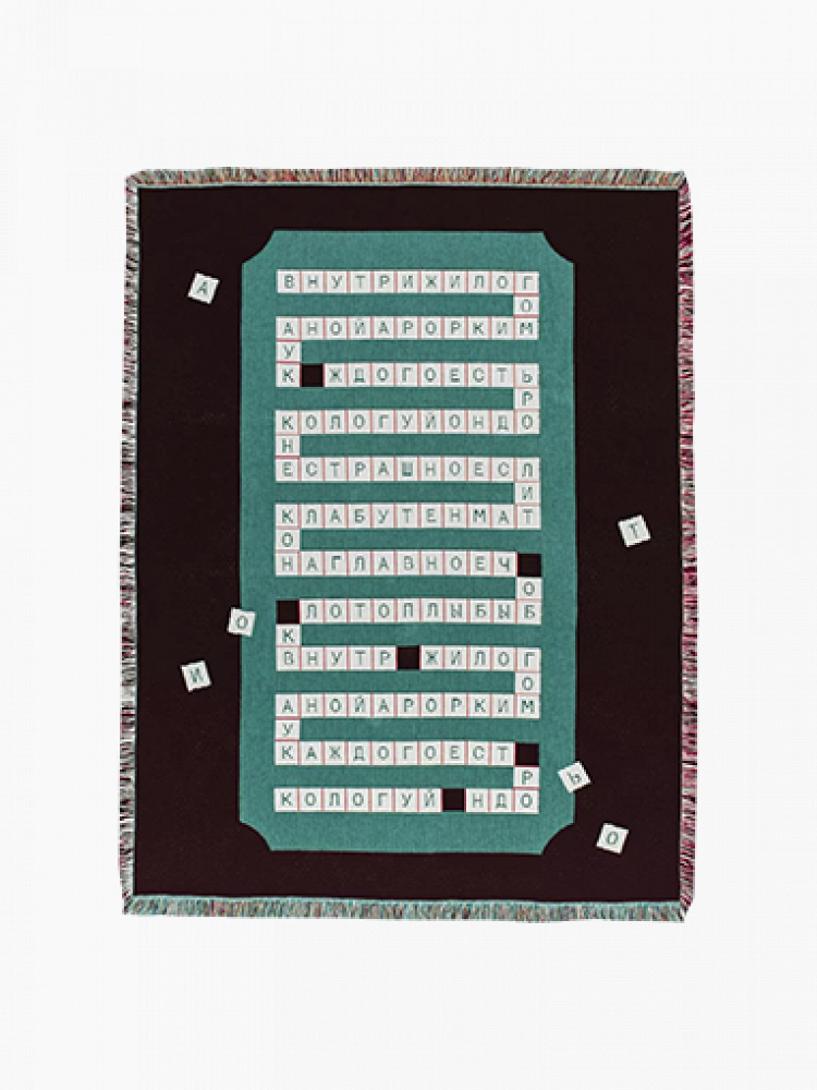 Декоративный (на ваше усмотрение) плед с ироничным стишком.