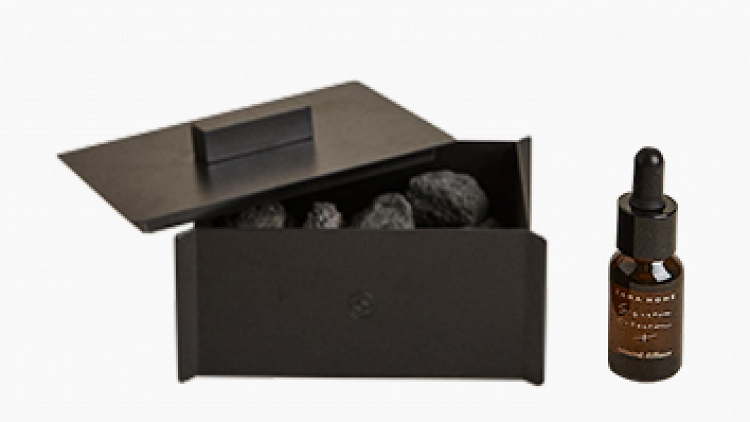 Шкатулка с вулканическими камнями и флакон с ароматной смесью эфирных масел — выглядит мистически и приятно пахнет.