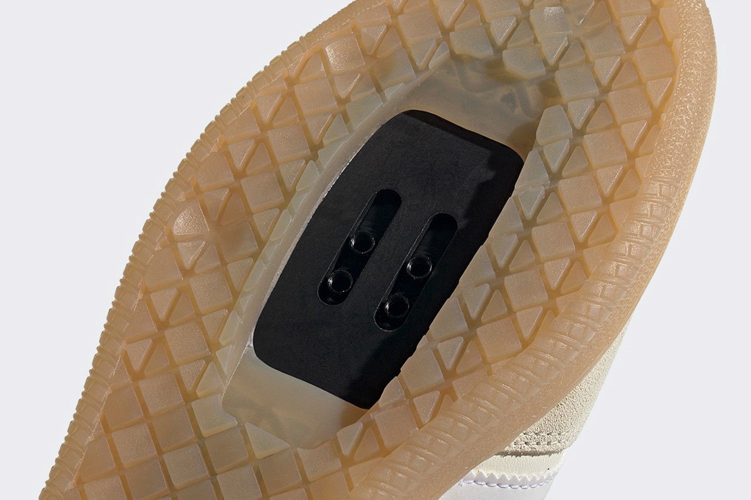 Как можно догадаться по названию, пара вдохновлена классической моделью adidas Samba. Кросссовки полностью повторяют дизайн предшественников. Из ключевых отличий: велокрепления для педалей, встроенные в подошву, и рефлективные три полоски на боковых панелях. Пара доступна в четырех расцветках: кремовой, черной, кислотно-желтой и темно-синей.