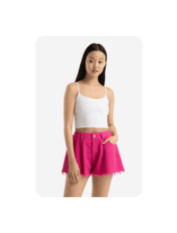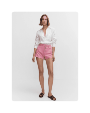 Этим летом нам никуда не деться от барбикора. Говорим спасибо Грете Гервиг и Марго Робби и наряжаемся в розовое. Розовые шорты — отличный компромиссный вариант, если тотал-лук в одном оттенке вас пока пугает. Дополнить их можно ремешком-цепочкой с брелоками или футболкой с надписью «Barbie». Да, это постпостирония — а вы что думали?