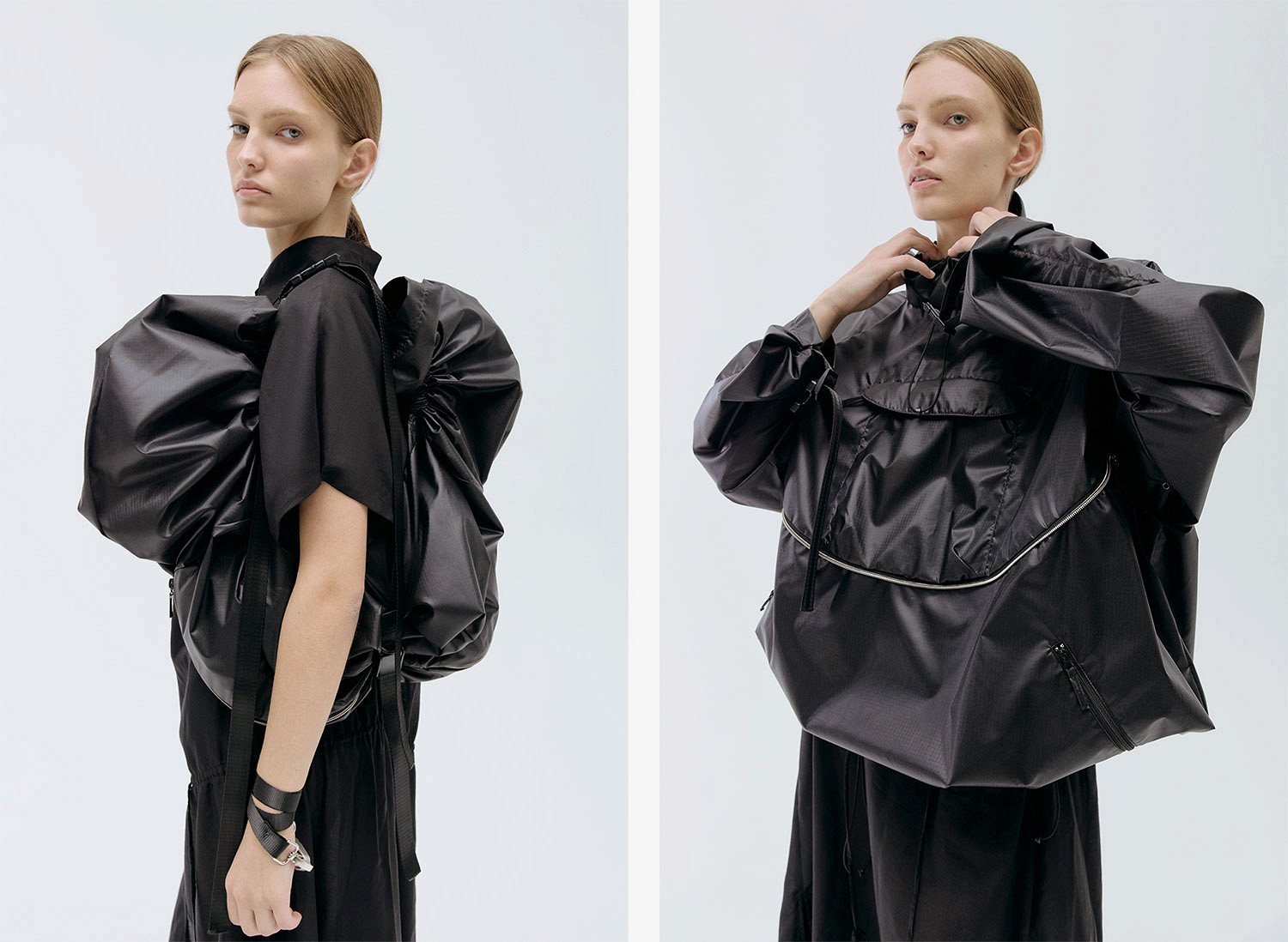Бренд из Петербурга, который берет за основу образцы спецодежды, спортивной и профессиональной экипировки. Мы влюбились в стеганый двусторонний бомбер, пальто-пиджак из экокожи на тонком утеплителе и вирусившуюся в сети сумку-трансформер, которая несколькими движениями превращается в стильный дождевик-анорак.