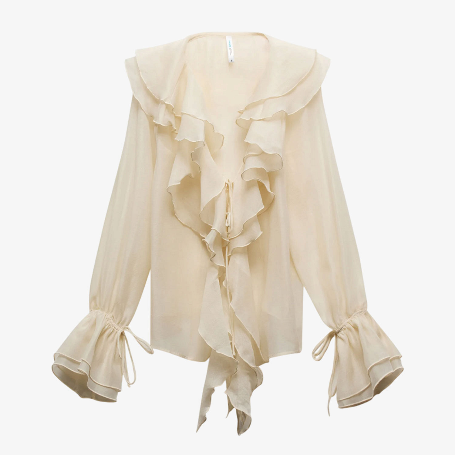 Мрачные наряды в духе Мортиши Аддамс теперь носит другая звезда сериала «Уэнсдэй» — Дженна Ортега, и не в кино, а в жизни. Во многом благодаря новому образу актрисы полупрозрачные черные и бежевые макси-платья, корсетные топы и блузы с воланами — этакий викторианский кор из готической вселенной — этой осенью мощно залетели в тренды.
