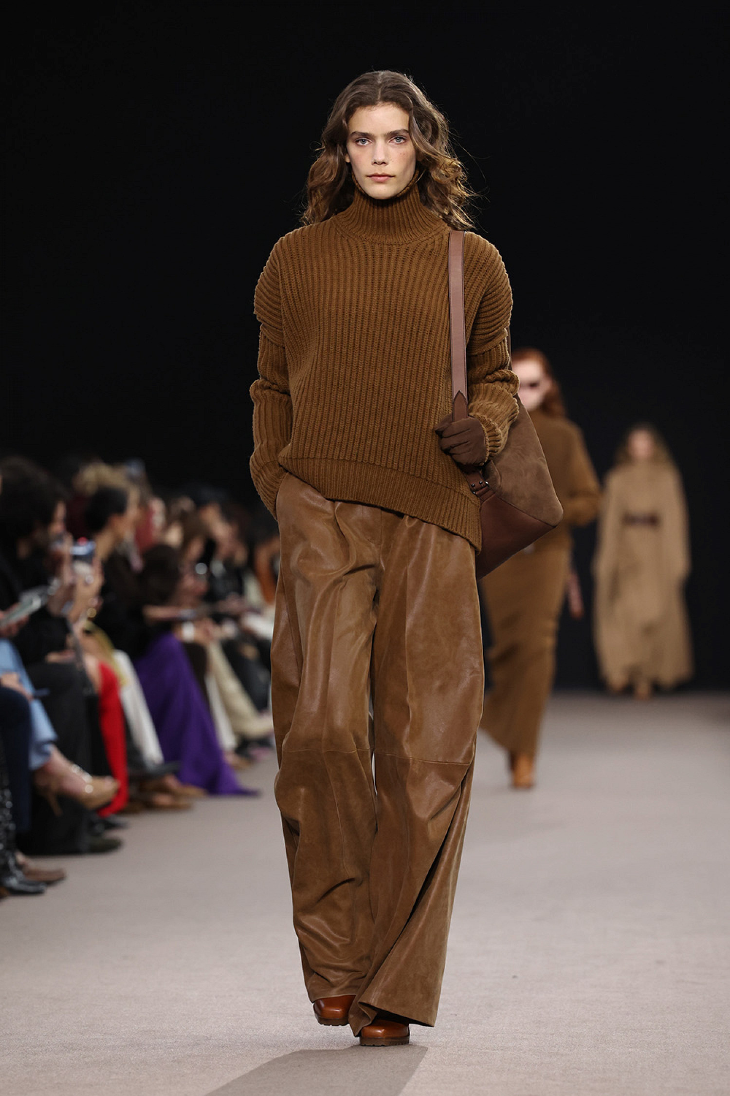 Популярность коричневой гаммы (вспомним про mocha mousse от Pantone), по-видимому, отвечает общему стремлению к комфорту и уюту — цвет ассоциируется с шоколадом, кофе и какао. На подиумах это настроение воплотилось в теплых предметах гардероба: пальто, свитерах, шубах. А самые трендовые образы включают в себя платья, юбки и куртки из кожи. Не отказывайте себе в удовольствии и облачайтесь в коричневый с головы до ног.