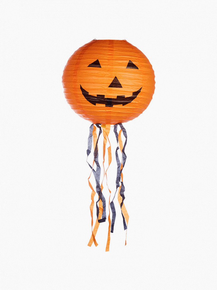 Традиционно для украшения тыкве вырезают глаза и рот. Чтобы не переводить продукты зря, для декора купите бумажный фонарик в японском стиле. Во-первых, выглядит весело. Во-вторых, в конце праздника «тыкву» можно запустить в небо, загадав желание.