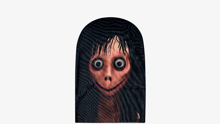 Тканевые маски с лицами в этом году популярны. На Хэллоуин предлагаем поменять привычного Якубовича на Момо — мистический персонаж с жуткой улыбкой. С черным худи смотрится очень реалистично, так что ненароком не напугайте друзей в темноте.