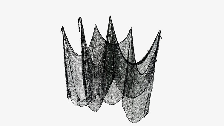 Есть кое‑что помасштабнее светящейся паутины — черная марля, которую можно повесить под потолком или над столом с угощениями. С такой можно провести настоящую фотосессию в готическом стиле.