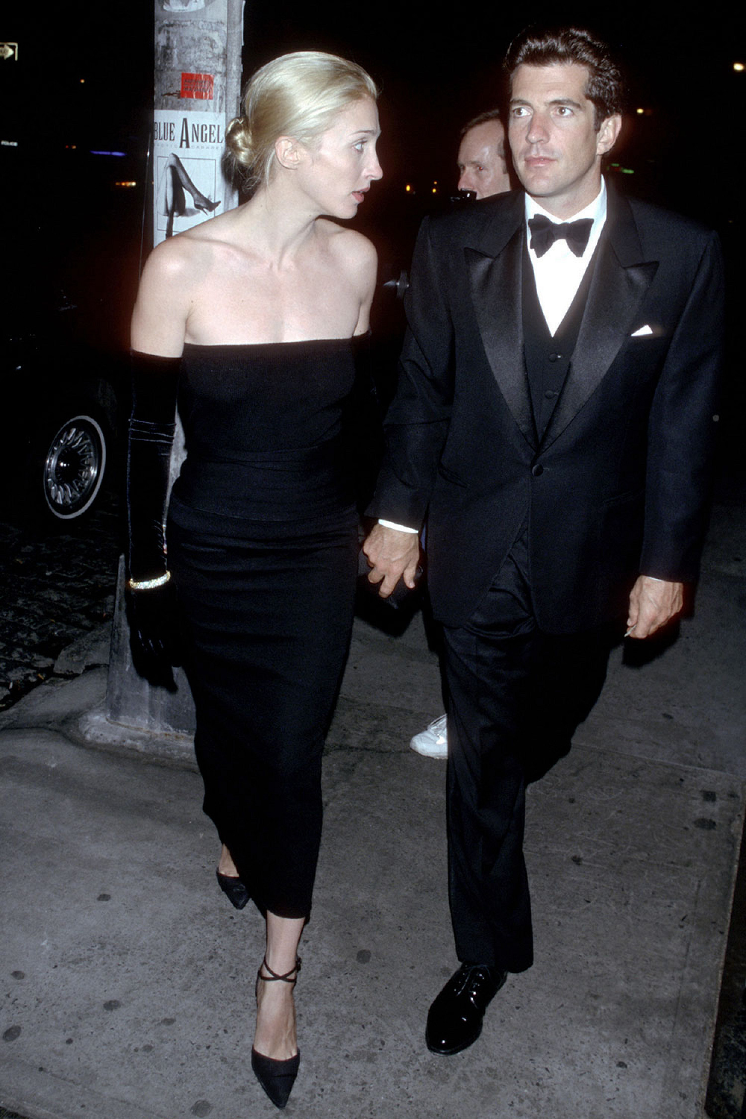 В первую очередь стоит вспомнить о Келли Кляйн — фотографе, жене и музе Кельвина Кляйна (пара рассталась в 2006 году). Кстати, ее персонаж, сыгранный Лейлой Джордж, присутствует в сериале. Келли часто появлялась на вечерних мероприятиях в струящихся платьях-сорочках. Сходство со свадебным платьем Кэролин, сконструированным Нарцисо Родригесом, очевидно.