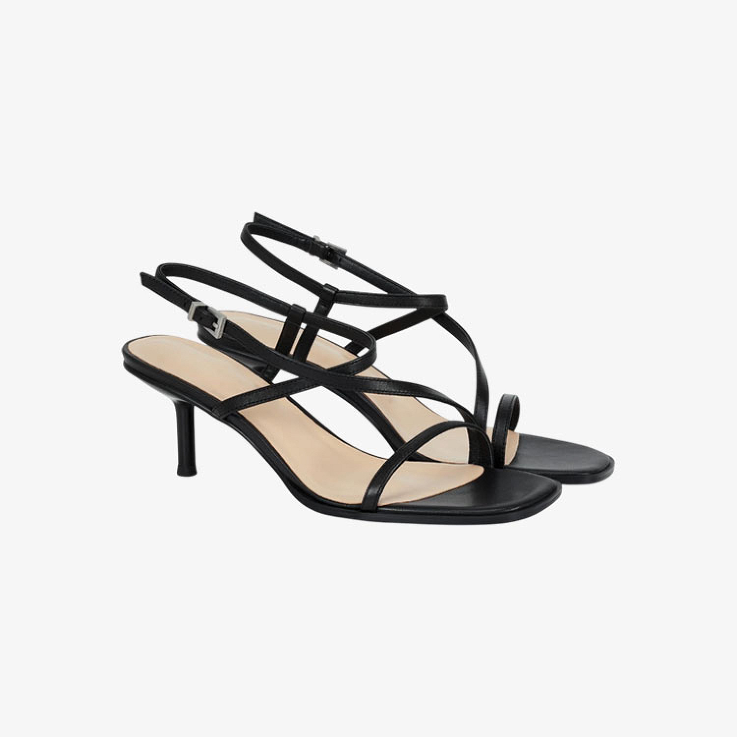 То, что выглядит просто, бывает сложно повторить. Ищите джинсы классического синего цвета, которые сядут идеально. Черный топ из хлопка замените на трикотажного майку из благородного материала (например, шелка или кашемира). Золотистые босоножки с тонкими ремешками собирают наряд до конца.