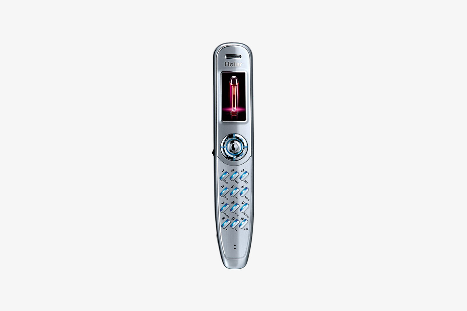 Абсурдный эксперимент из 2000-х — мобильник, который буквально выглядит как ручка. Весит он около 65 грамм, а внутри крошечный цветной экран, камера 0,3 Мп и пара мегабайт памяти. При этом всем в нем также есть GPRS-интернет, MMS, диктофон и даже возможность записывать до полутора часов аудио.