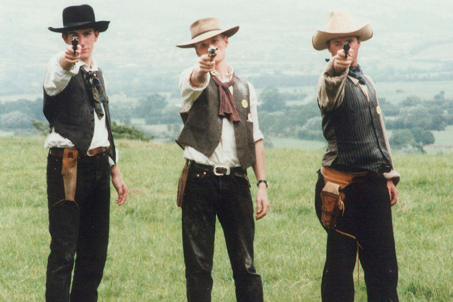 Дебютный полный метр Райта «Пригоршня пальцев», снятый в 90-е, по окончании арт-колледжа, напоминает современные ютуберские скетчи. Друг детства режиссера Грэм Лоу старательно пародирует Клинта Иствуда — если бы он был вашим другом и вы вместе сидели в пабе, это могло бы быть обаятельно. Антураж вестерна в кадре задают другие щуплые парни с накладными усами, картонная лошадь и прочий нарочито фальшивый реквизит да монтажные оммажи самым заезженным приемам Серджо Леоне. В общем, в гипотетическом обзоре на «Пригоршню долларов» какой‑нибудь BadComedian справился бы с пародийными скетчами не хуже.