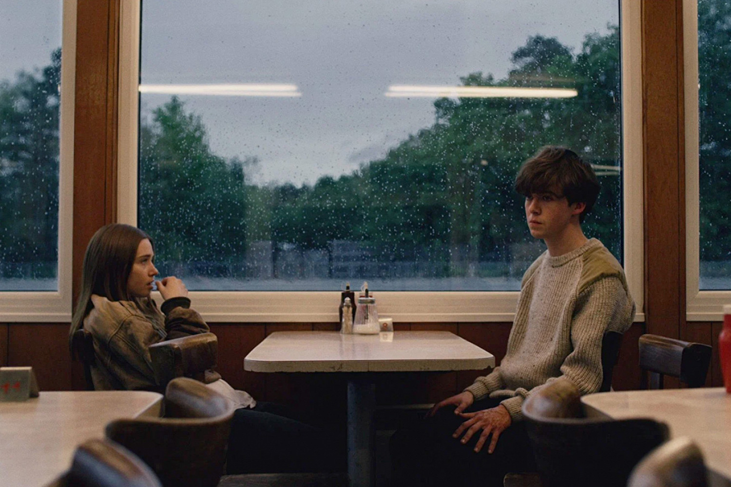 Кровавое роуд-муви и история любви двух 17-летних подростков: замкнутого и безэмоционального Джеймса, считающего себя психопатом, и вспыльчивой Алисы. Они сбегают от своих семей на машине отца Джеймса. По пути подростки совершают убийство, а затем убегают от полиции. Их путешествие выдержано в эстетике американских мотелей, неоновых вывесок и придорожных кафе. А еще у сериала почти 100%-ный результат на Rotten Tomatoes.