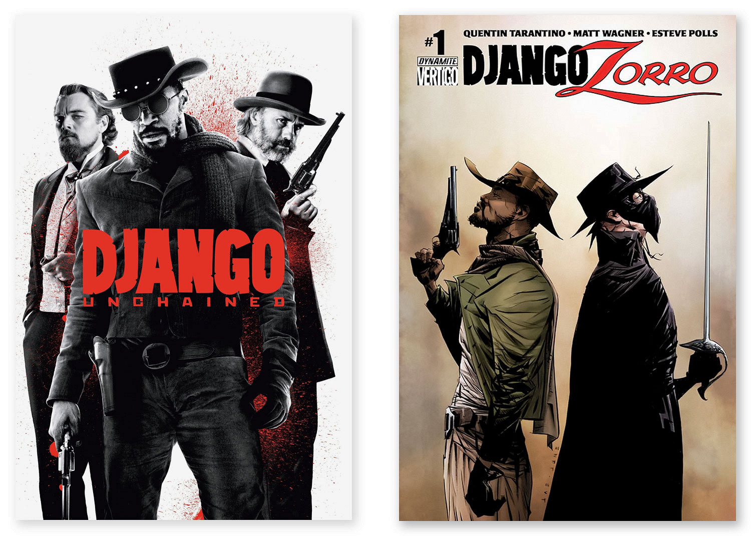 Комикс «Джанго/Зорро» — первый официальный сиквел Квентина Тарантино, второй — фильм «Приключения Клиффа Бута», поставленный Дэвидом Финчером, — выйдет на Netflix в этом году. Идея кроссовера по «Джанго освобожденному» и «Зорро» пришла в голову не самому режиссеру, а издателю Нику Барруччи (перезапустившему «Зорро» в комиксах в 2008 году) и продюсеру «Джанго освобожденного» Реджинальду Хадлину, которые, так совпало, давно приятельствовали. Автор комикса «Зорро» Мэтт Вагнер и Тарантино познакомились непосредственно накануне совместного написания сценария, а за рисунок отвечал испанский художник Эстеве Поллс, ранее иллюстрировавший официальные комиксы по «Неудержимым» и «Хорошему, плохому, злому».