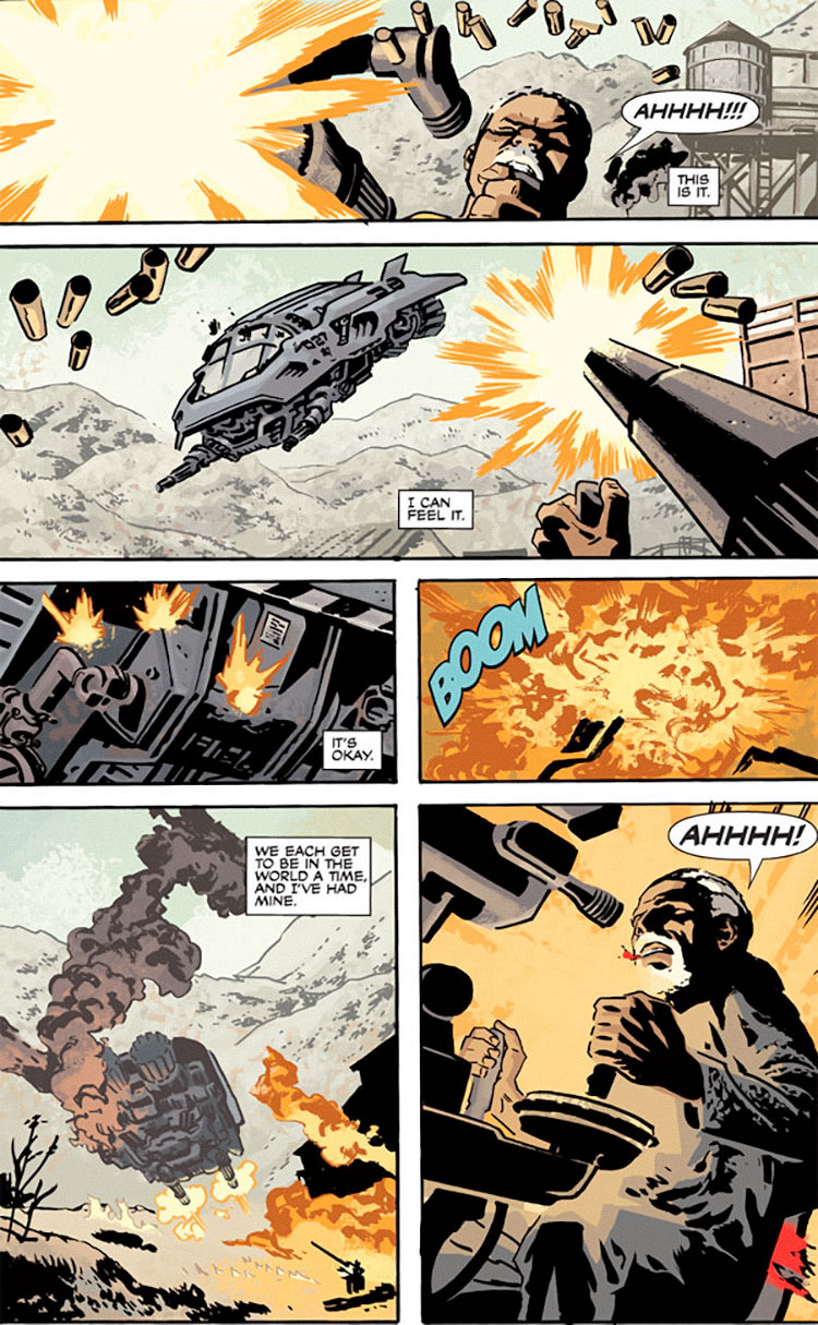 Печатный экшн в целом сносный, но и ему не достает тарантиновской отточенности мизансцены и монтажа: уже первый выстрел Джанго в дебютной главе так невнятно раскадрован, что банально плохо считывается — о полноценном саспенсе говорить не приходится. Впрочем, фанатам Тарантино, скучающим по его фирменным круто сваренным диалогам, цепляющим фразочкам и полифонии акцентов, прочитать комикс однозначно стоит — букв тут с лихвой.