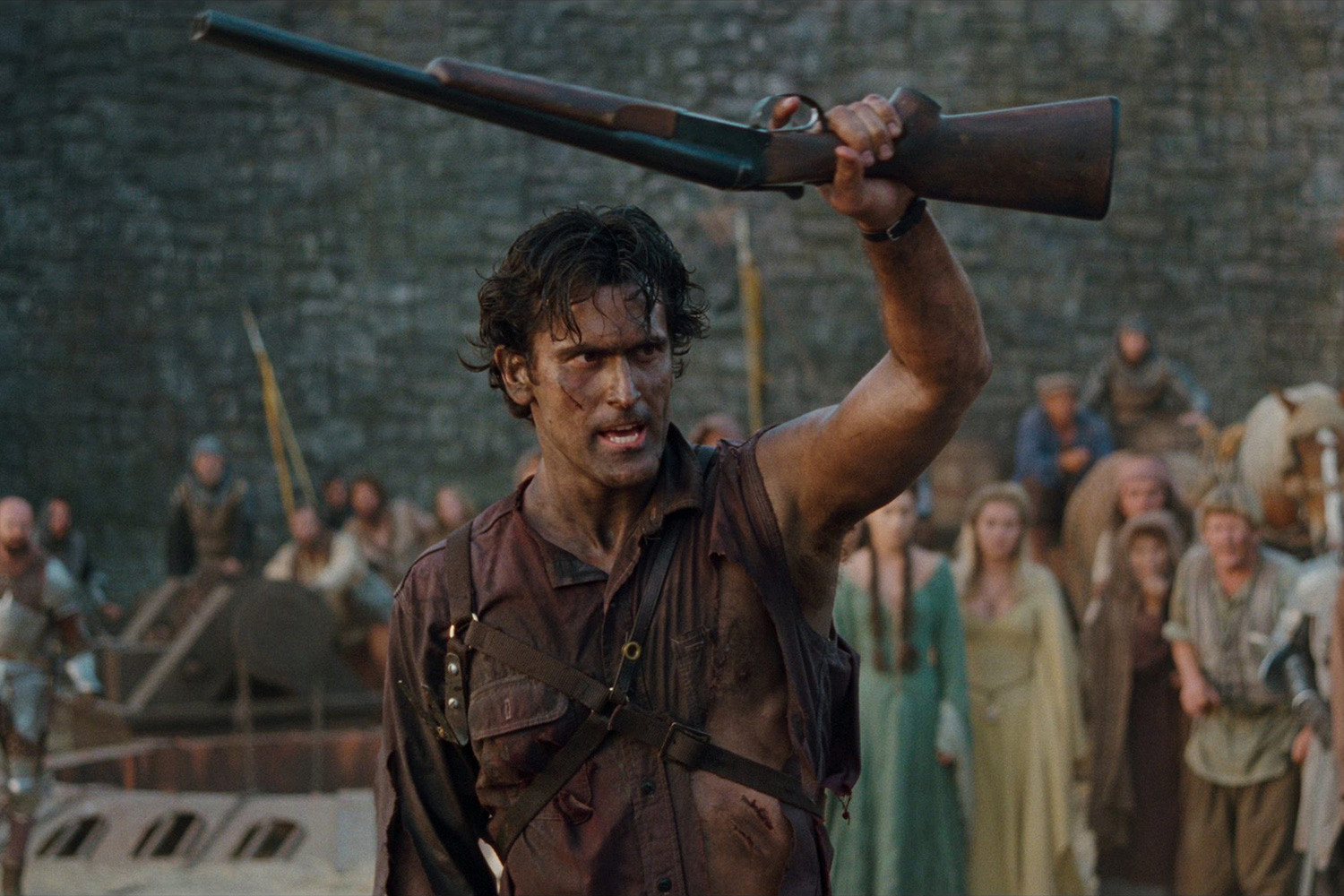Во время выхода «Армию тьмы» ждал неоднозначный прием: далеко не всем пришлось по духу переобувание из балаганного, но все же ужастика в дурашливую приключенческую комедию. Фильм и правда растерял хоррор-обаяние предшественников, но у него есть весомый контраргумент: это чертовски веселое кино. Не в последнюю очередь это заслуга настоявшегося в роли Эша Брюса Кэмпбелла. На третий раз Рейми спустил своего любимого актера с цепи и превратил Эша в героического подонка — одновременно нелепого, трусливого и жутко крутого.