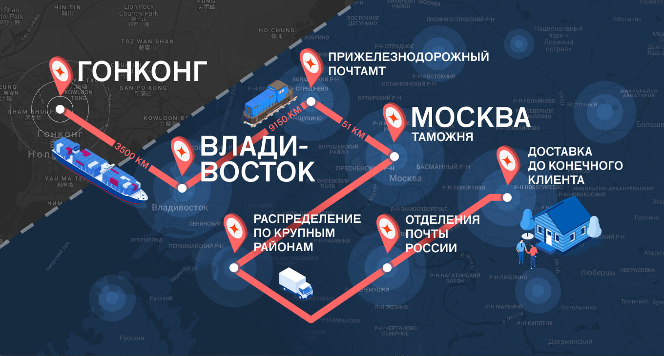 Компании запустили маршруты доставки для посылок из Китая через Дальний Восток России. Это сказалось на скорости доставки и снизило нагрузку на распределительные центры «Почты России» в Москве. Теперь посылки приходят морем во Владивосток и далее следуют по железной дороге из Владивостока в Москву