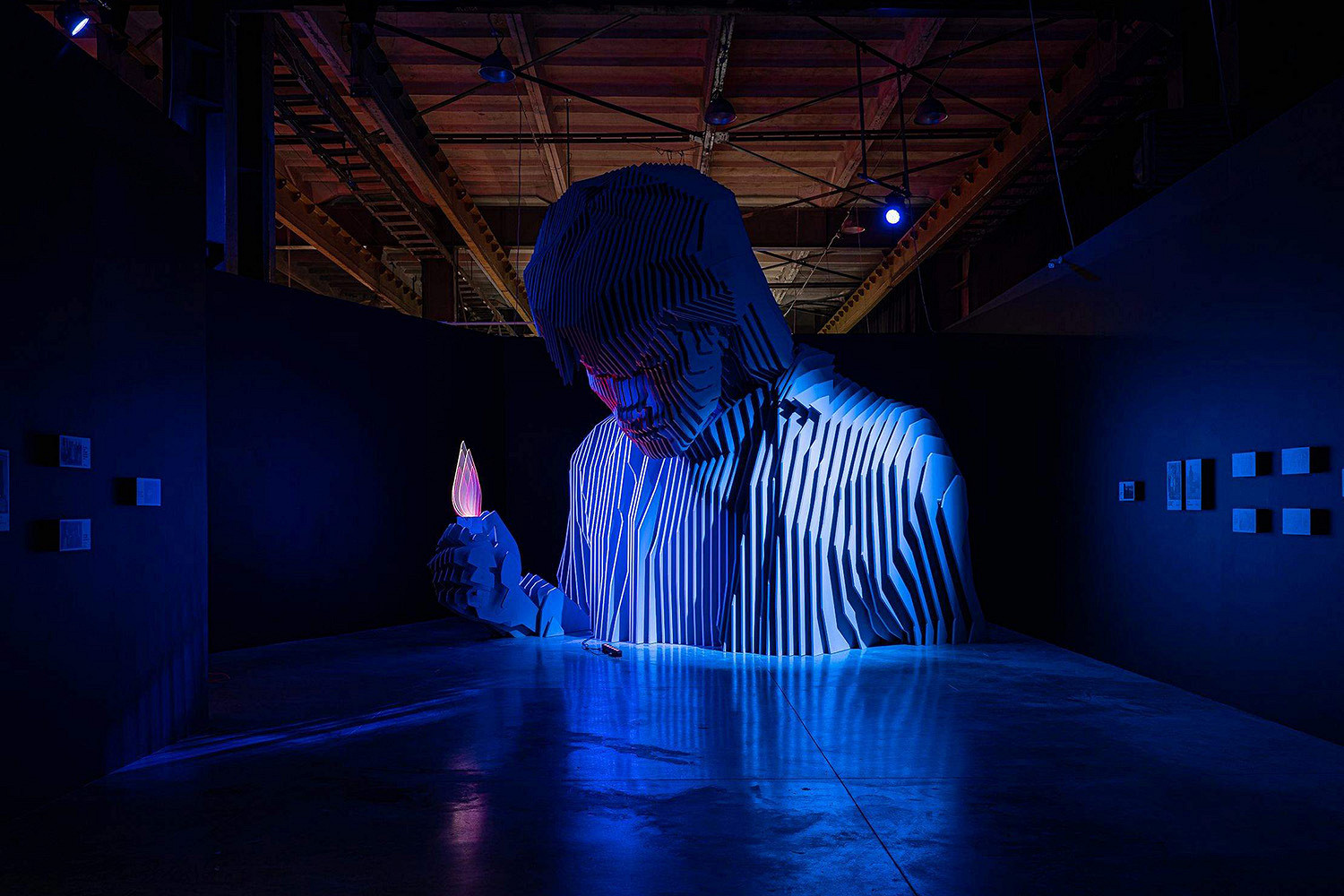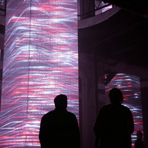 В своем творчестве arttech-продюсер Алиса Давыдова, AV-художник Саша Медведев и медиахудожник Саша Коджо фокусируются на сенсорных переживаниях. В Петербурге они показали кинетическую лазерную скульптуру и две аудиовизуальные инсталляции. В системе параллельных пространств каждая из инсталляций физически разделена на две секции. Перемещаясь между ними, зритель сталкивается со множеством перспектив, углов и состояний восприятия.