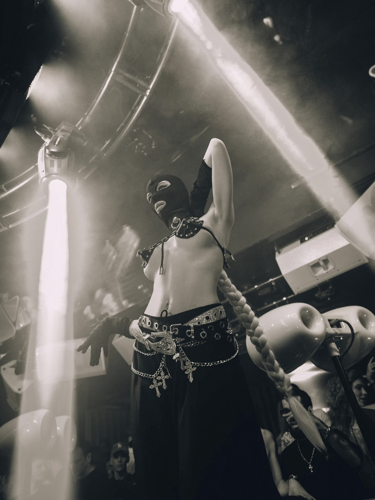 «К 23.00 у входа образовалась длинная очередь. Публика собралась колоритная: от вчерашних школьников до шикарных топ-моделей. Отдельно тусили блогеры и журналисты, этим вечером они планировали создавать контент, а не слушать американский рэп. Девушка спросила, как ей лучше появиться перед фейсконтролем — с желтыми очками или без. Она явно переживала, что ее не пропустят. Простояли 30 минут, чтобы оказаться рядом с охраной. Компанию подруг перед нами развернули — они пытались пройти второй раз и постоянно говорили про какую‑то Кристину, которая должна была добавить их в ВИП-списки.