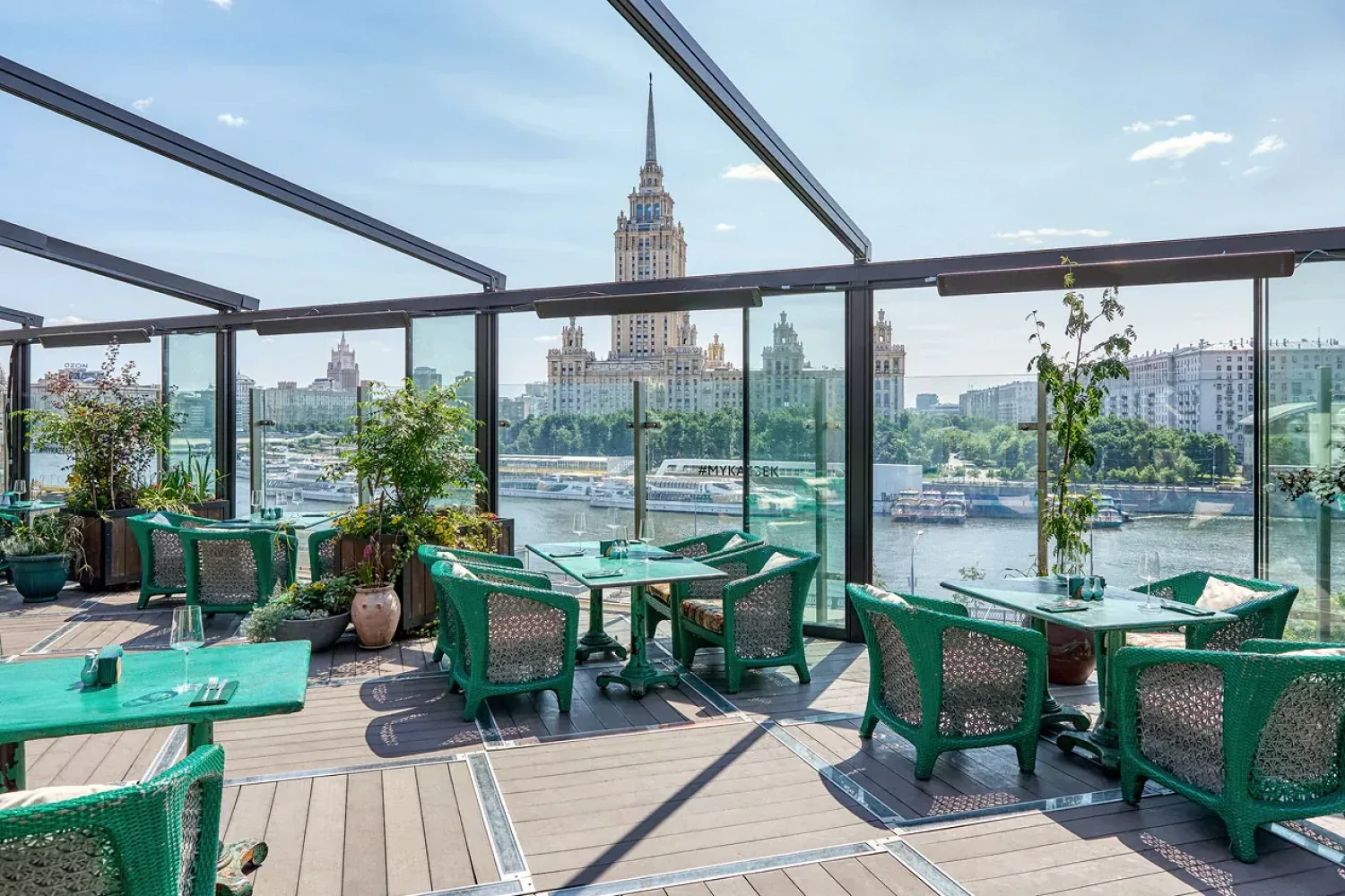 Сезон завтраков, обедов и ужинов на открытом воздухе закончился, но поесть на веранде или террасе еще возможно. Закрытая, теплая и с огромными панорамными окнами (вид на Москву-реку и одну из семи сталинских высоток) у грузинского ресторана «Казбек» — и это идеальный фон для нежного хачапури под бокал сухого красного. Если хочется чего-то более изысканного, обратите внимание на специальное меню: бренд-шеф Мамия Джоджуа каждый месяц готовит интерпретации различных национальных кухонь. Прямо сейчас предлагает испанские паэлью и баскский чизкейк с отчетливым кавказским акцентом.