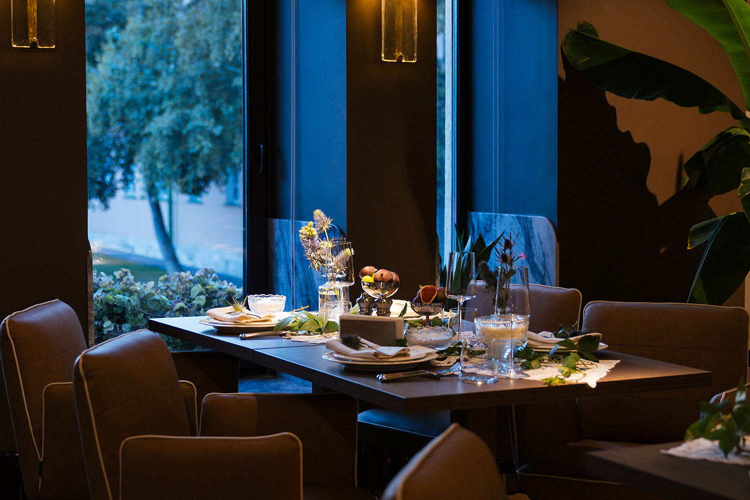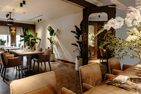 Обновленное осеннее меню от бренд-шефа Кирилла Бергера. В нем запеченное говяжье ребро в сене с жидким салатом из помидоров, тальолини с морским ежом и ферментированным лимоном, севиче из лосося с папайей и манго, салат с артишоком, трюфелем и сухим мисо и запеченный морской еж с гребешком и муссом из фуа-гра.
