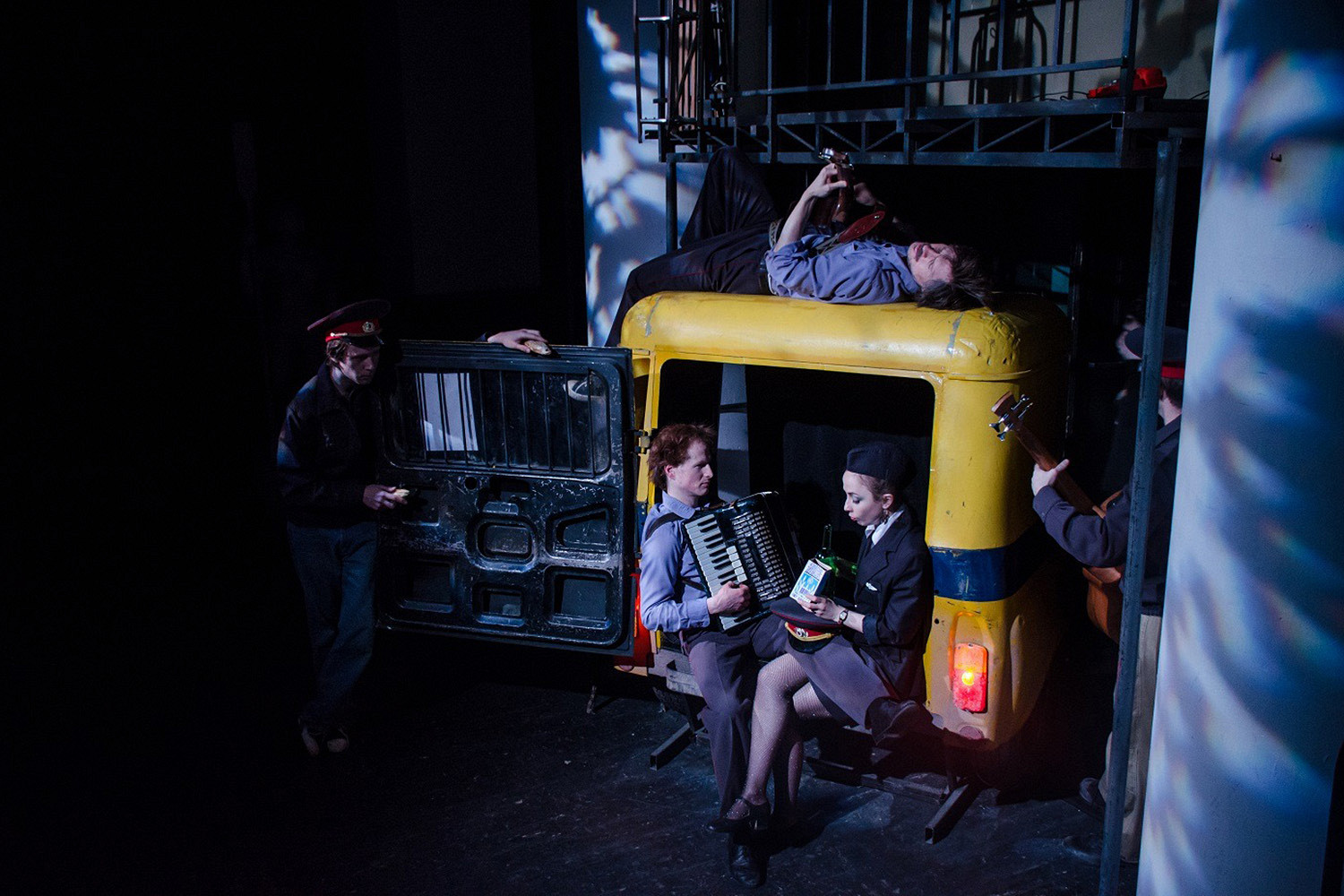 «Осторожно, поезд отправляется!» — и публика начинает путешествие от остановки до остановки, от одного места действия к другому. «Общежитие», «Вторчермет», «Парк культуры и отдыха имени Маяковского», «Крыша»… На каждой из станций музыкального путешествия можно найти приметы реального Екатеринбурга/Свердловска. Узнаваемые бытовые детали в соединении с фантасмагорическими картинами создают особенную атмосферу театрального маршрута, гласит описание спектакля.