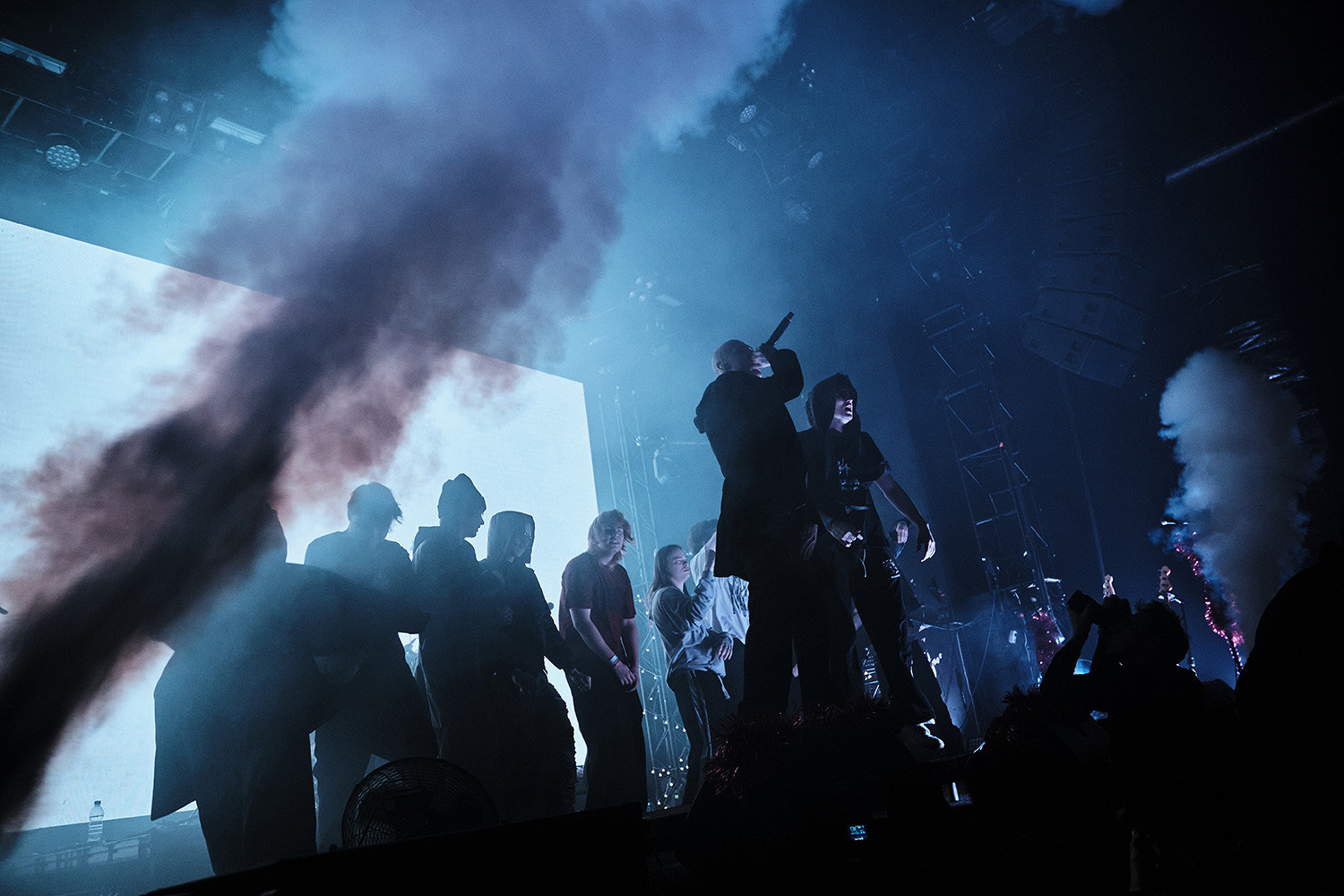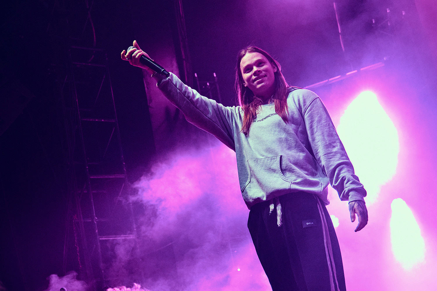 На сцене — очередной секретный гость. Рэпер Fortuna 812 (по моему мнению, самый брутальный и дерзкий из всех современных альт-музыкантов) выходит на сцену без майки и показывает толпе факи. Он исполняет свой хит «ParisLove», а теперь — выход долгожданного хедлайнера, группы Cupsize, которую называют «Пошлой Молли» нового поколения. Зрители скандируют «Пошел ***** [на хер]!», но в какой-то момент фраза превращается в «Рос-си-я!». С первого трека нефорята организуют слэм, оказываюсь в эпицентре. По сравнению с эмо-концертами здесь все нежнее: люди меньше толкаются, просто прыгают рядом друг с другом. Какой-то безумец летит со второго этажа випки в толпу — надеюсь, он ничего не сломал. На последнем треке ребята сталкиваются «стенка на стенку».
