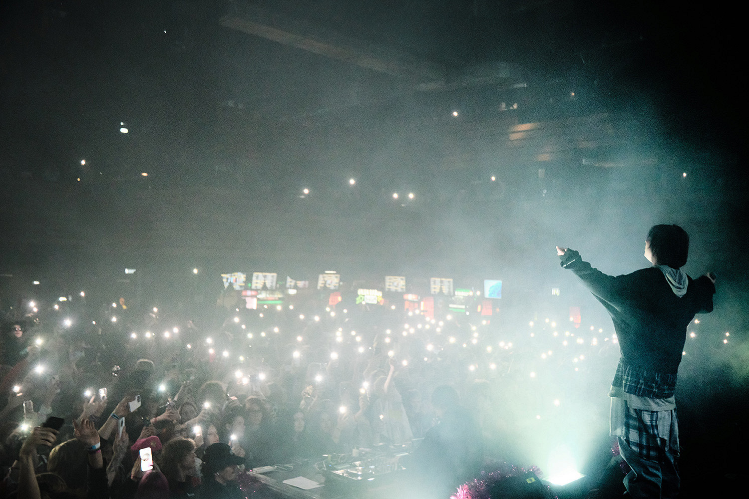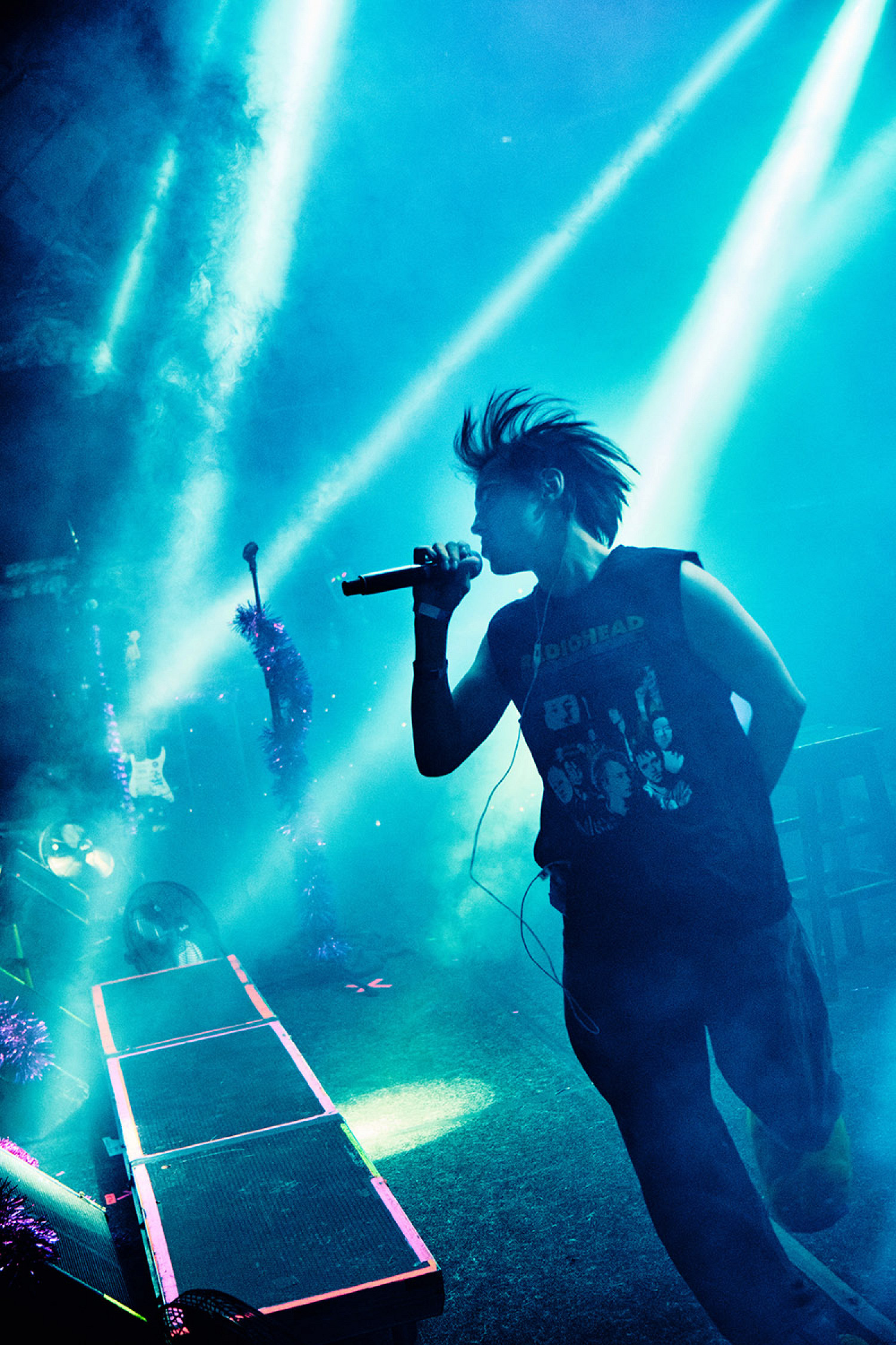 На диджей-сете перед концертом включают главные альт-бэнгеры от 2hollis, Темного Принца, Hofmannita, Платины, madk1d, XXXTentacion и Ивана Золо, на каждый трек собравшиеся реагируют восторженно. Обхожу клуб, стараюсь не ударить каблуками лежащих и сидящих вдоль стен ребят. Люди здесь открытые и общительные — со мной легко заговаривают, хвалят образ, тоже подхватываю этот вайбик. Знакомые встречают друг друга криками и прыжками. Чувствуется, что многие подростки сильно ждали «Дурку»: клуб забит.