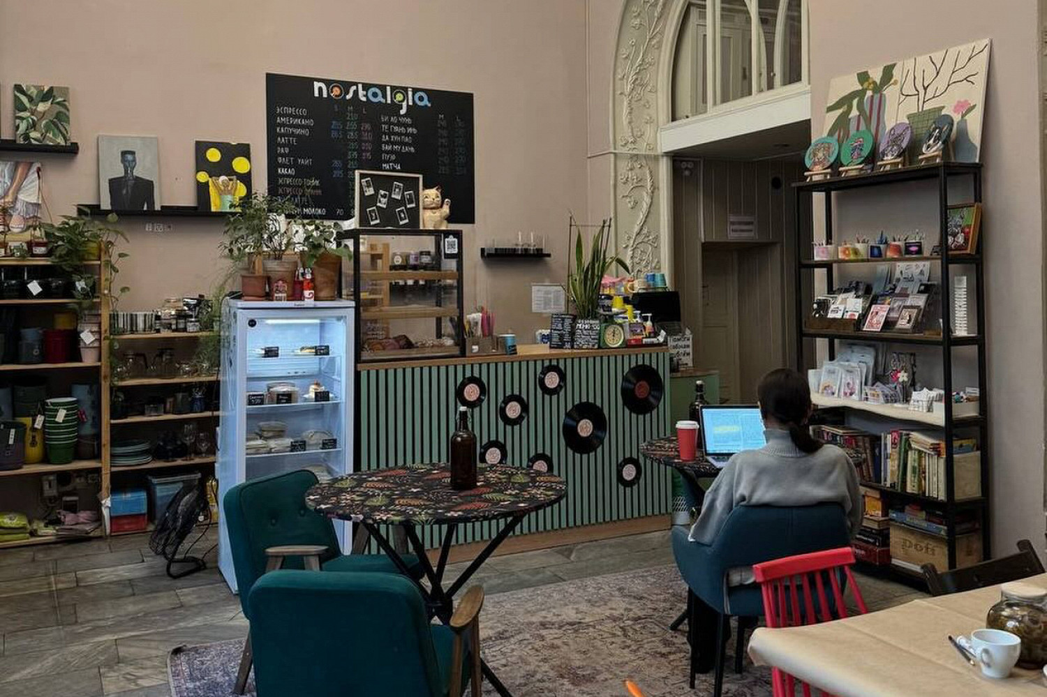 В «Ностальгии» проводят кинопоказы, устраивают лекции, разговорные клубы и рады даже фрилансерам за ноутбуком. Летом на улицу выставляют шезлонги, так что с книжкой и чашкой капучино можно позагорать (не забываем SPF). Кроме кофе и чая есть базовые сэндвичи, круассаны с начинками и без и небольшие десерты вроде канеле или корзиночек с ягодами.