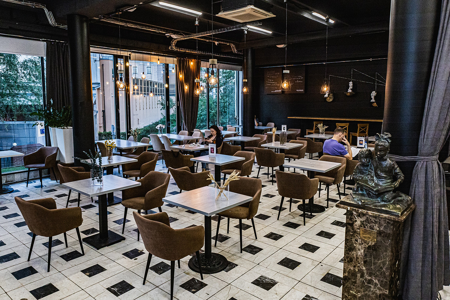 При книжном работает не просто кофейня, а настоящее олдскульное литературное кафе. В меню — кофе и чай, супы, горячие блюда вроде куриных котлет, салаты типа «Цезаря» и целая витрина с десертами и сэндвичами-треугольниками. Здесь проводят кинопоказы, лекции и презентации книг. В целом идти сюда стоит не ради вкусных булок (здесь они скорее средние), а за букинистическим вайбом.