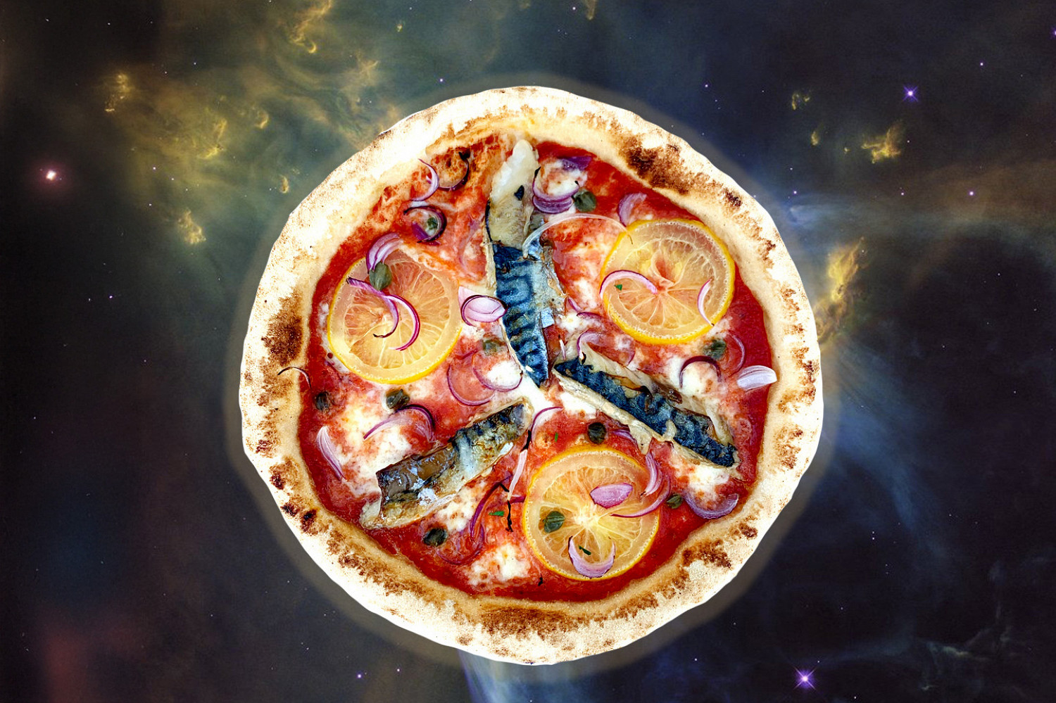В пиццерии все меню космическое, причем не только в апреле, но круглый год. Готовят 25-сантиметровую пиццу на пышном тесте. Вкусы не самые классические, а названия — с отсылками к межгалактическим приключениям. Есть «Dark side of the spoon» с соусом из квашеных томатов, фрикадельками из индейки, чеддером и халапеньо; «Astronom-nom-nom» c грибами, беконом, соусом бешамель и тремя видами сыра; и «Суперновая Маргарита» с сулугуни и соусом из квашеных томатов.