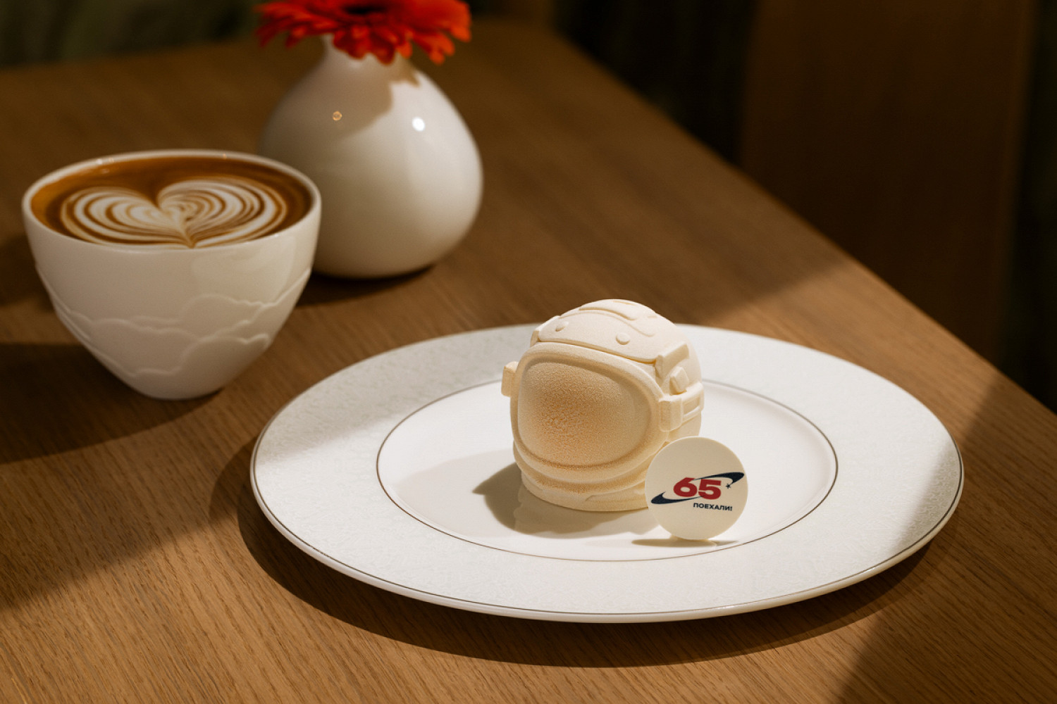 С 5 по 12 апреля в бистро можно попробовать десерт, навеянный 65-летием полета Юрия Гагарина. Кейк-попс «Млечный путь» выполнен в форме сферы — с глазурью глубокого цвета и декором в виде звезд и космических элементов. Внутри — шоколадная «картошка» с вишней.
