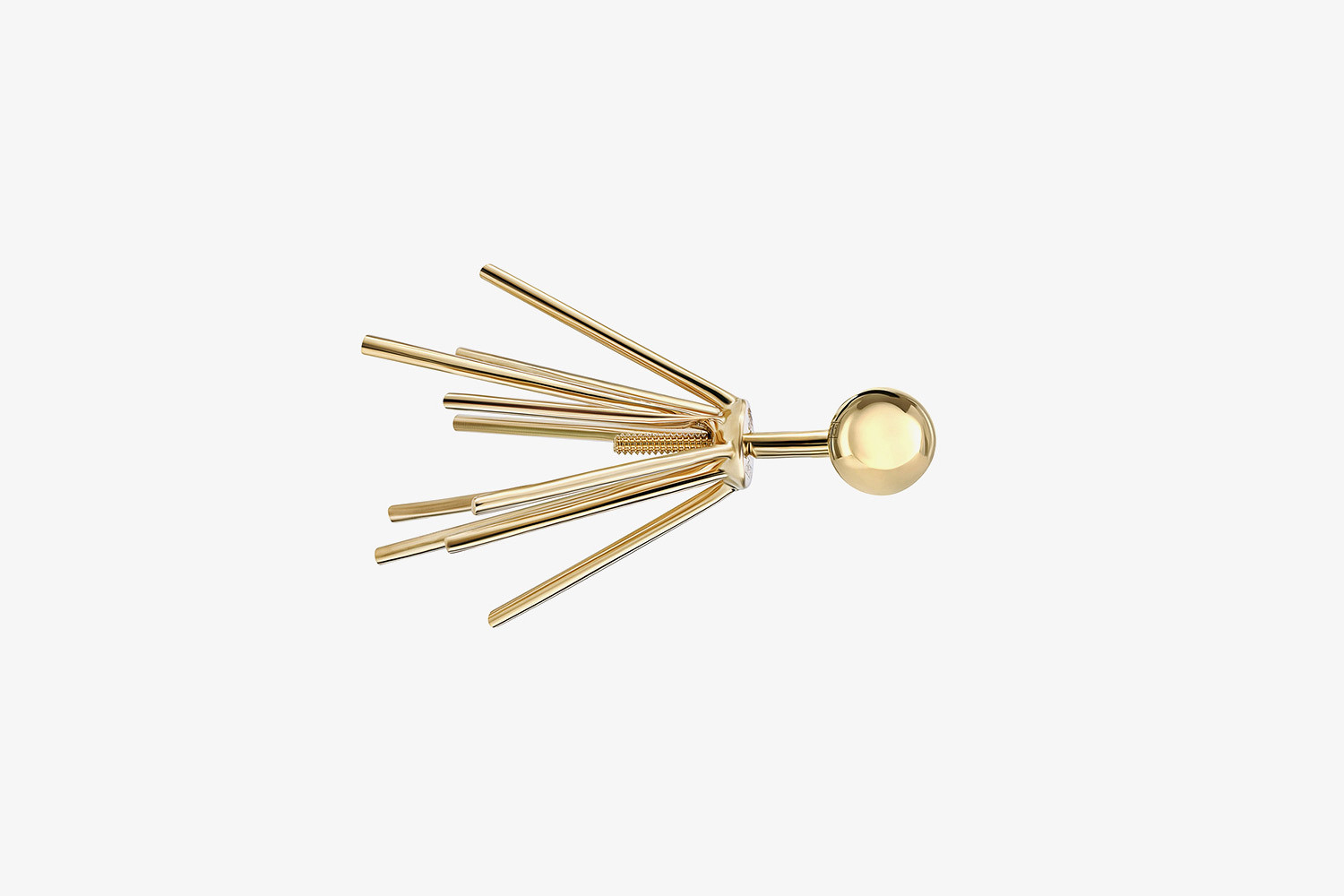 Моносерьга в виде золотой кометы — самодостаточная и не требует пары.