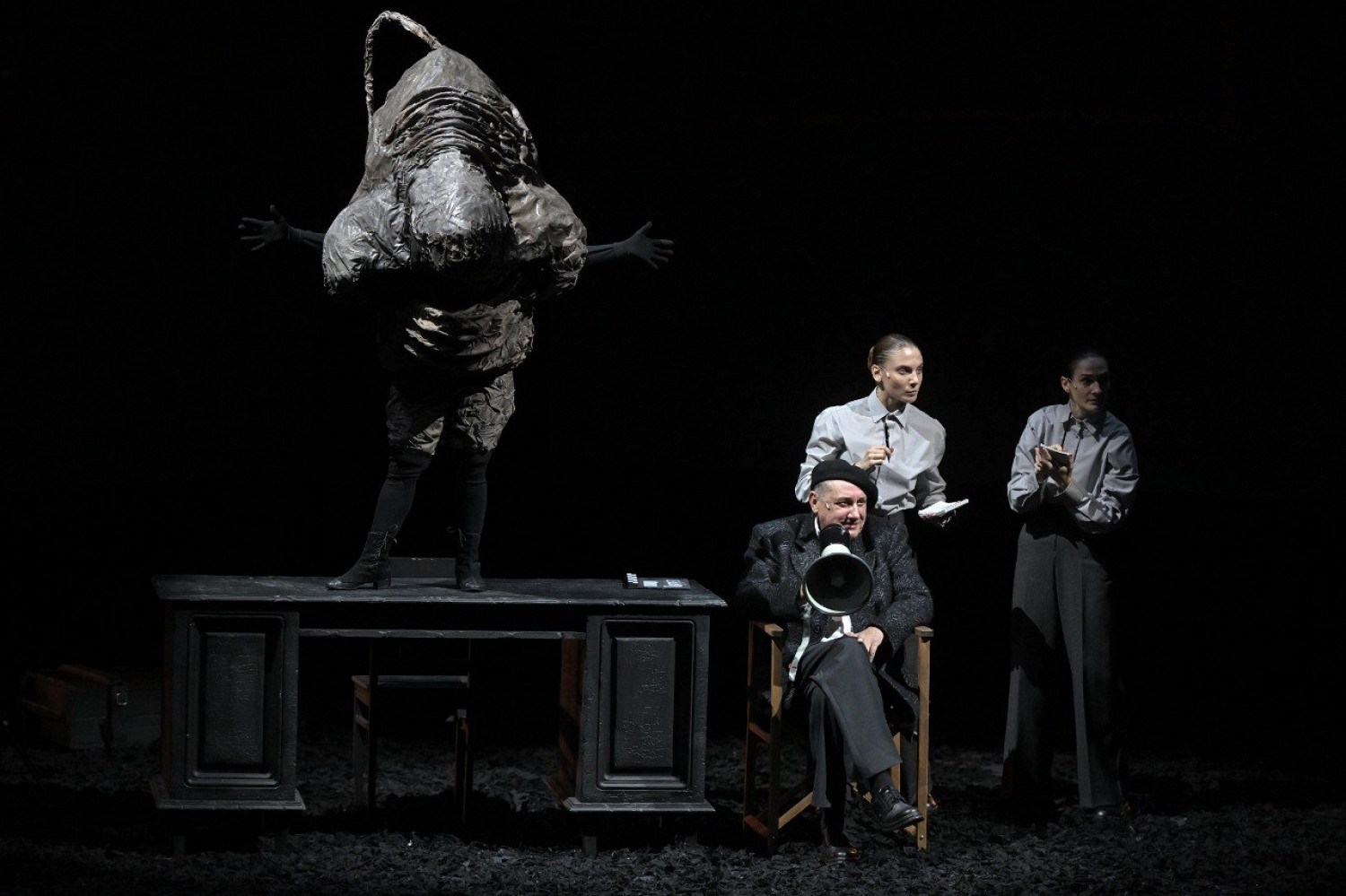 В спектакле Никиты Колебева и Антона Оконешникова соединены фрагменты нереализованного сценария Григория Козинцева по «Петербургским повестям» Гоголя и эпизоды, персонажи, мотивы из этих гоголевских текстов. Действие превращается в съемку фильма, которого не было, с Игорем Волковым и Иваном Трусом в главных ролях.