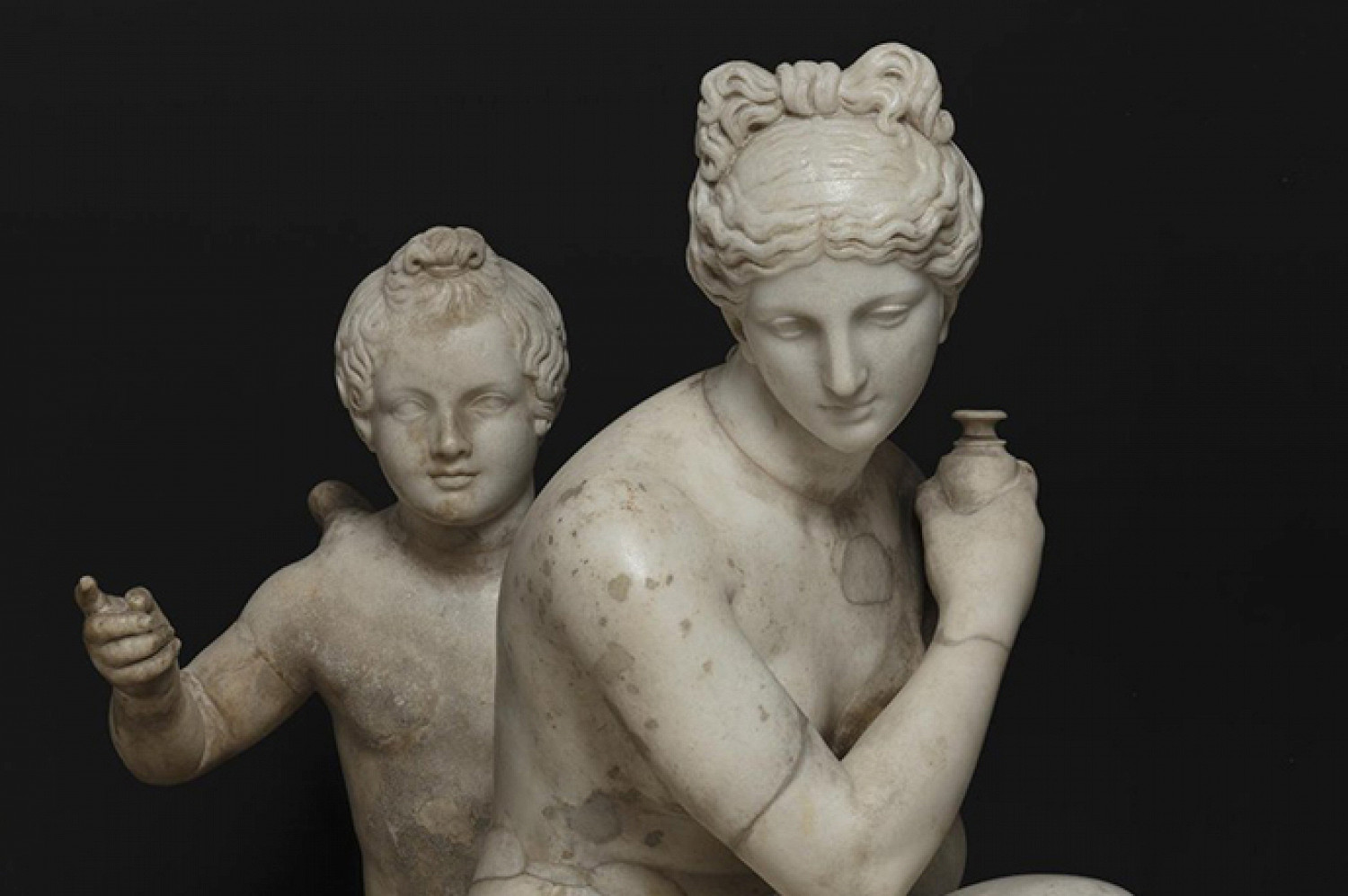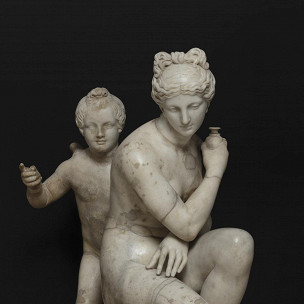 Доминантой новой выставки в Эрмитаже стала скульптурная группа «Афродита и Эрот» («Венера и Амур») из знаменитой коллекции маркиза Кампаны. Ее дополняют мраморные изображения богини любви и красоты, керамика, связанная со свадебными обрядами, а также кольца, серьги, ожерелья и витые браслеты. Бонус — аромат фиалки, витающий в Римском дворике: этим цветком украшались храмы Афродиты и свадебные венки невест.