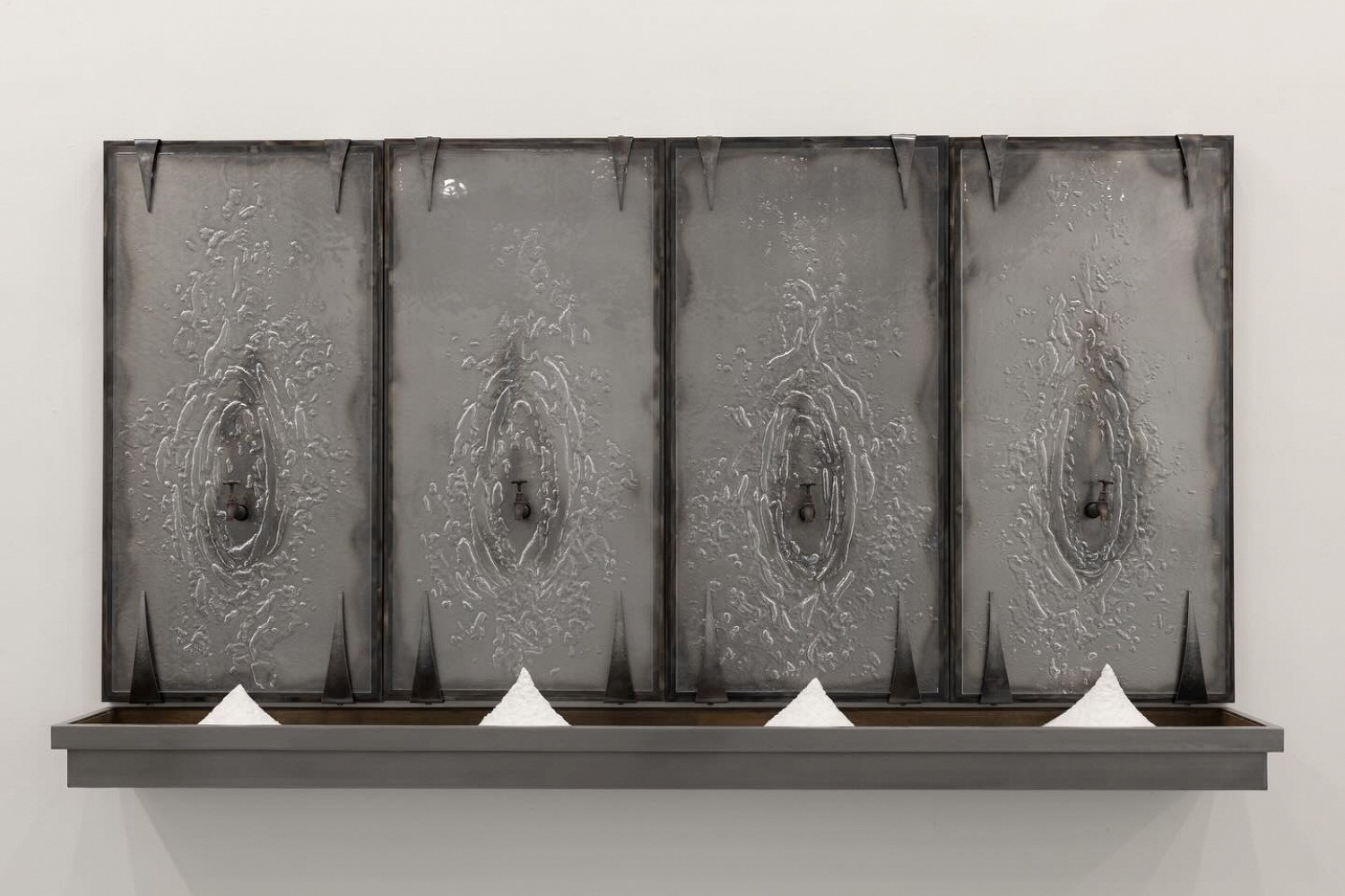 Молодая петербургская художница Виктория Кравцова соединяет разные по структуре и свойствам материалы: сталь, стекло, бумагу, пластик и соль. «План эвакуации» — это история одной комнаты, воплощенная в жанре тотальной инсталляции, «личное и сокровенное место обитания человека, которое трещит под натиском внешних обстоятельств».