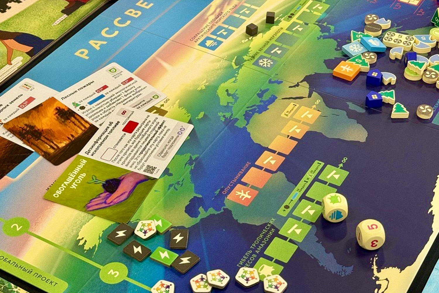 Климатическая катастрофа — проблема, которая с каждым годом становится все разрушительнее, увы, не в играх, а в реальности. Но эта кооперативная стратегия от создателя «Пандемии» напоминает, что с любой бедой можно справиться, если действовать сообща. В «Рассвете» вы будете на каждом ходу сталкиваться с растущими аппетитами человечества и пытаться нейтрализовать их с помощью природы и инфраструктуры. Цель игры — добиться полной нейтрализации выбросов, помогая друг другу. Ведь, как и в реальности, выиграть или проиграть в этой игре могут только все вместе.