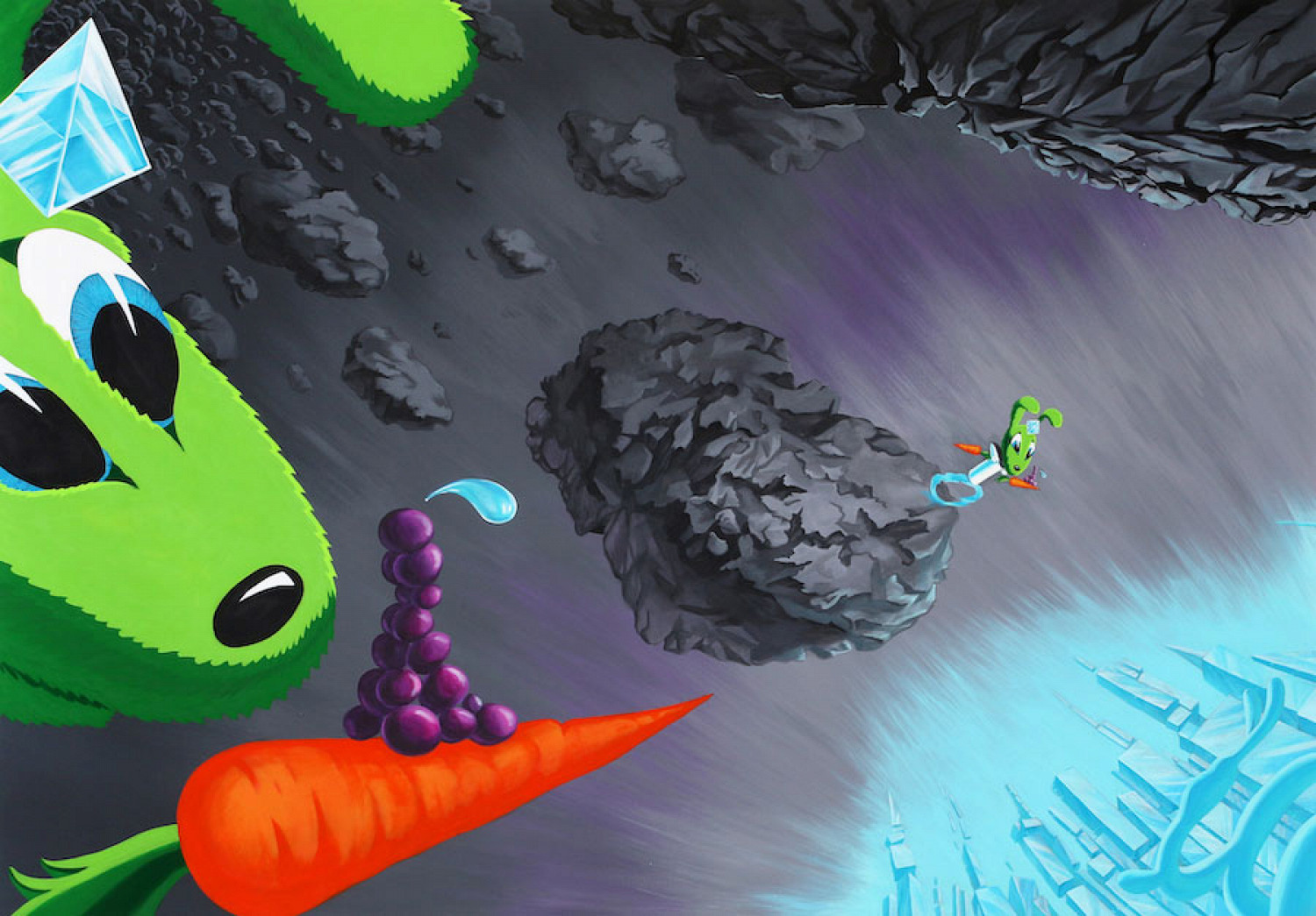 В ММОМА на Гоголевском открылась большая выставка, которая знакомит с мультивселенной Ростана Тавасиева, известного многим как автор техники «бегемотопись» или создатель камней с глазами. В экспозиции представлены работы более чем за двадцать лет творчества: от ранних ассамбляжей с образами звездного неба («Милки Вей», 2009) и мультсериала «Капля креацина» (2017) до новейших живописных, скульптурных и графических серий, посвященных искусству в космическом пространстве (2020–2025).