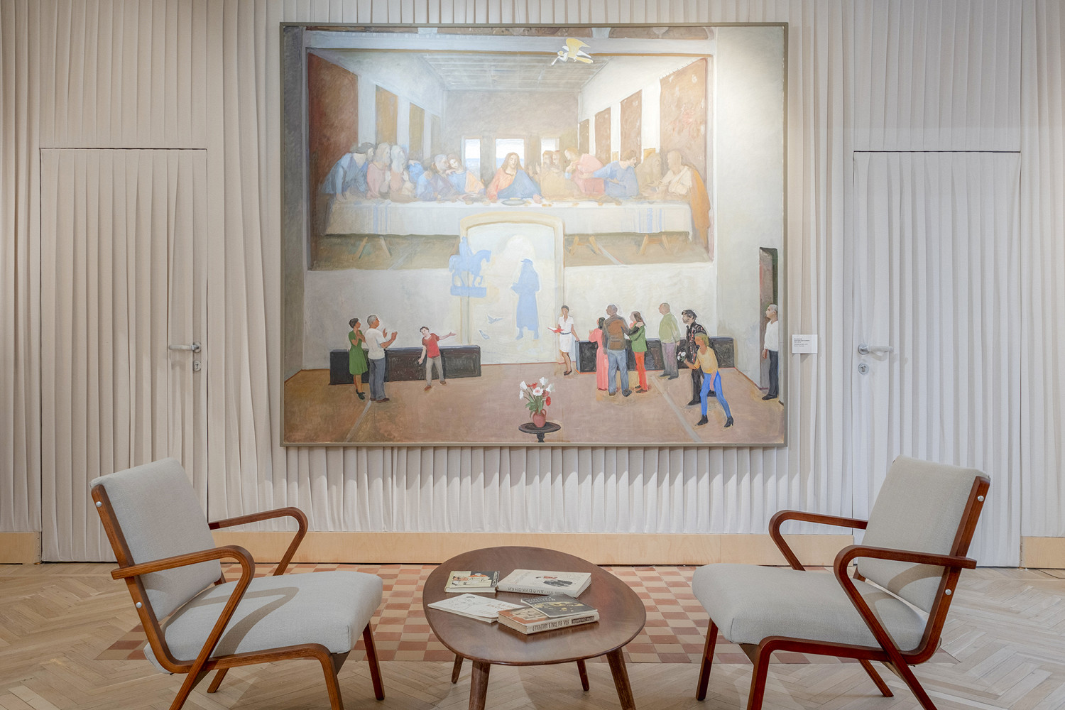 «Заграница — это миф?!» — небольшая, но милая выставка в камерном уютном пространстве. Для музея, открывшегося осенью 2025 года, это вторая временная экспозиция. А сама институция посвящена уникальной арт-коммуне, существовавшей на северо-западе Москвы.
