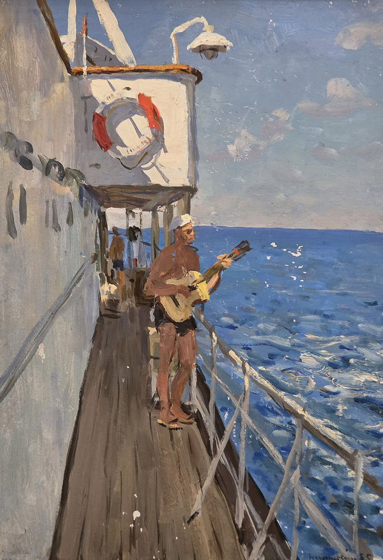 На борту «Победы» находились сливки советского общества, в том числе и успешные художники: Семен Чуйков с женой Евгенией Малеиной, Виталий Горяев, Федор Богородский, Георгий Нерода и другие.