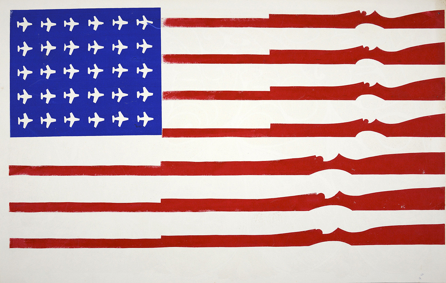 Многие из этих плакатов переосмысляли звездно-полосатый флаг, под которым за океаном совершались военные преступления. Часто символ страны был перевернут: согласно традиции, перевернутый флаг считается сигналом бедствия. На одном из самых впечатляющих плакатов полосы на нем превратились в винтовки, а звезды — в бомбардировщики, груженные снарядами с напалмом и белым фосфором. Сами по себе эти плакаты, конечно, не отменили войну, но сыграли важную роль в медленном процессе изменения общественного мнения. Три года спустя Никсон вывел войска из Вьетнама, а антивоенные протесты — с обязательными креативными плакатами — с тех пор стали традицией американских университетов.