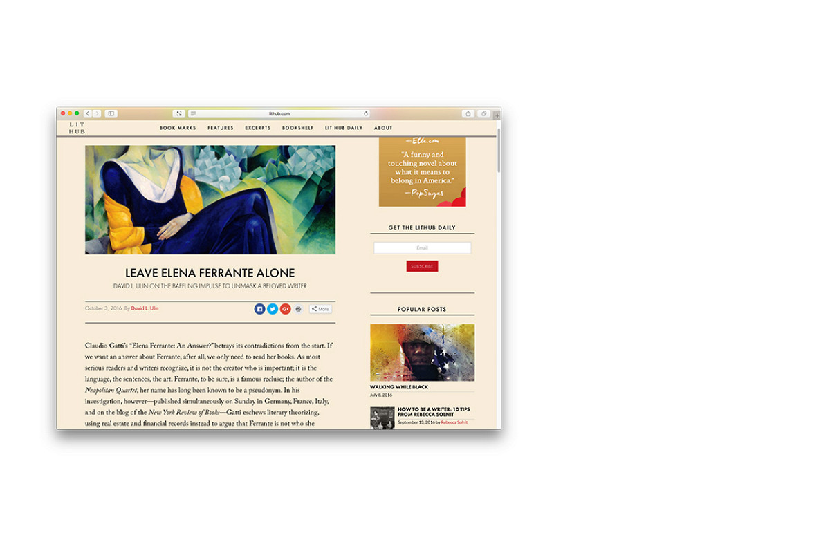 Оставьте Элену Ферранте в покое: монолог редактора Lit Hub