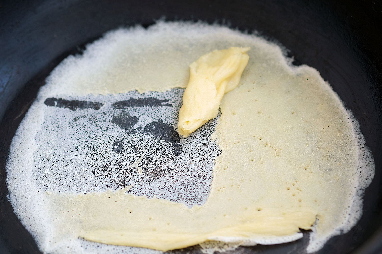 Большую роль играет качество муки: для блинов важно, чтобы в ней было много клейковины. Она отвечает за эластичность теста, в том числе благодаря ей блины не рвутся и их легко переворачивать на сковороде. Именно поэтому часто попытки приготовить блины без глютена из альтернативных видов муки — гречневой, рисовой, овсяной — заканчиваются отсутствием блинов и испорченным настроением. Чтобы результат не разочаровал, я советую все же смешивать любую другую муку с пшеничной высшего сорта в пропорции 30 к 70 граммам.