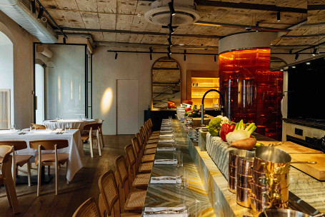 В ресторане Александра Оганезова нет привязки к какой‑либо национальной кухне и даже ньокки готовят на свой лад. Картофель в тесте заменили на манную муку, а вместо традиционной формы «клецкам» придают вид толстой продолговатой пасты или крохотных шариков. Крупные подают со страчателлой и горохом, мелкие — с креветками под сливочным соусом. Цены на блюда достаточно высокие — если хотите ньокки с креветками по более доступной цене, можно заглянуть в ресторан Gentle тех же владельцев. Традиционно картофельные ньокки тут готовят не со сливочным, а с томатным соусом, за 770 рублей.
