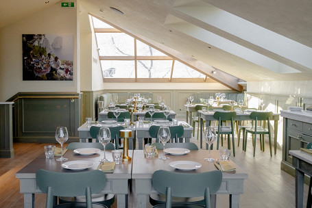 В Marso Polo цветут живые цитрусовые деревья, а официанты одеты в яркую розовую, желтую и бирюзовую форму, сшитую петербургским брендом Not for Sale. Кажется, будто ты не в Петербурге, а в солнечной Италии. Придет тепло, и картинка станет убедительнее: стеклянные ставни распахнутся, а панорама сменится катерами, проходящими по соседней Мойке.