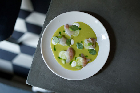Несмотря на название ресторана, кухню здесь нельзя назвать ни нордической, ни северной русской. Большинство горячих готовят в печах, нет ни одной плиты — вот такое ограничение. Утром идти стоит за, пожалуй, самым необычным в Москве омлетом — с крабом, зеленым горошком и зеленым соусом из укропа (700 р.). В тех же печах готовят гречневую кашу, что очень по-русски, но с муссом из пармезана (300 р.). Еще есть пашот на дранике с щучьей икрой (300 р.), глазунья с пастрами и шпинатом (450 р.), блины с лисичками и трюфельной сметаной (400 р.). Из сладкого: сырники из топленого творога с вареньем из сезонных ягод (350 р.), сладкие трубочки с рикоттой (300 р.), геркулесовая каша с рикоттой, медом и гранолой (300 р.) и ангельский фермерский йогурт с розой и орешками (200 р.).